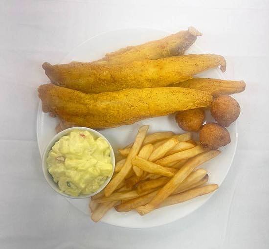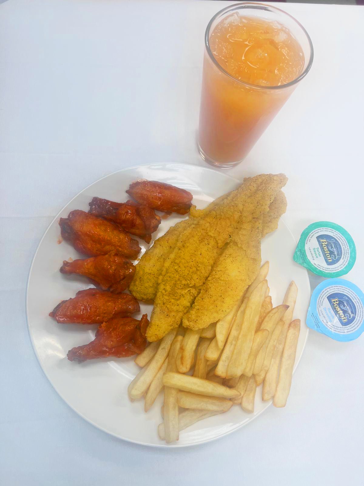 Pantrout Fish Combo: Choose from 2, 3, or 4 pieces. Served with fries and a choice of fruit punch, peach punch, or lemonade.